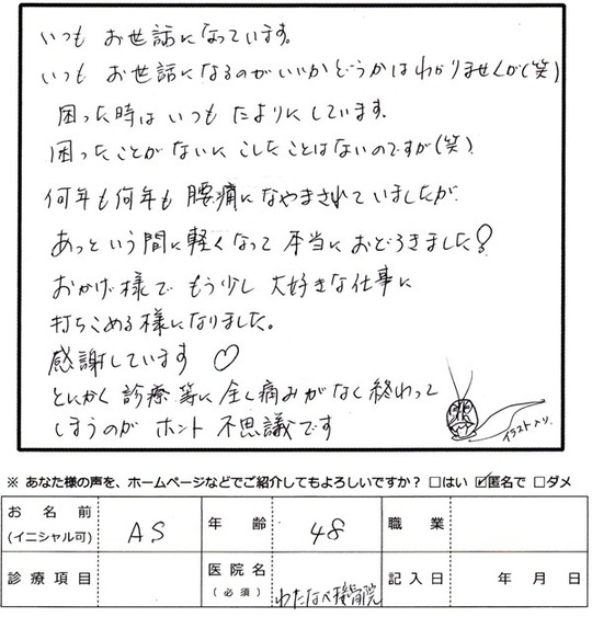 何年も何年も腰痛になやまされていましたが、