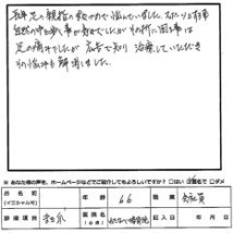 当研究所の施術の直後に痛みがなくなり大変喜んで見えました。