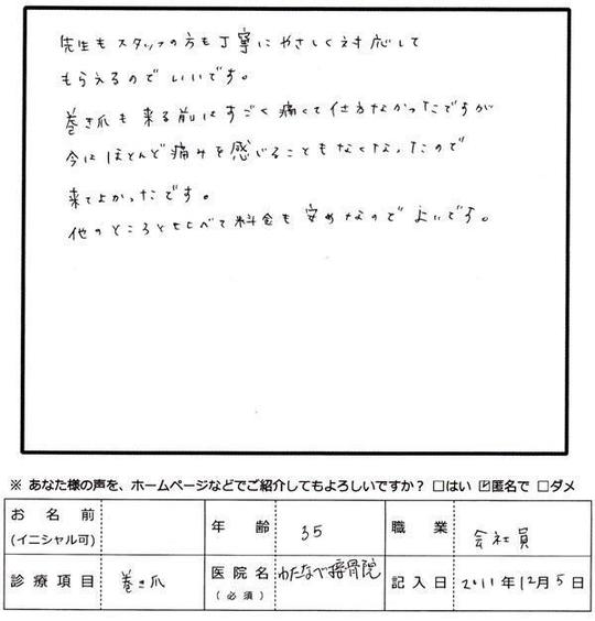 巻き爪も来る前はすごく痛くて仕方なかったですが